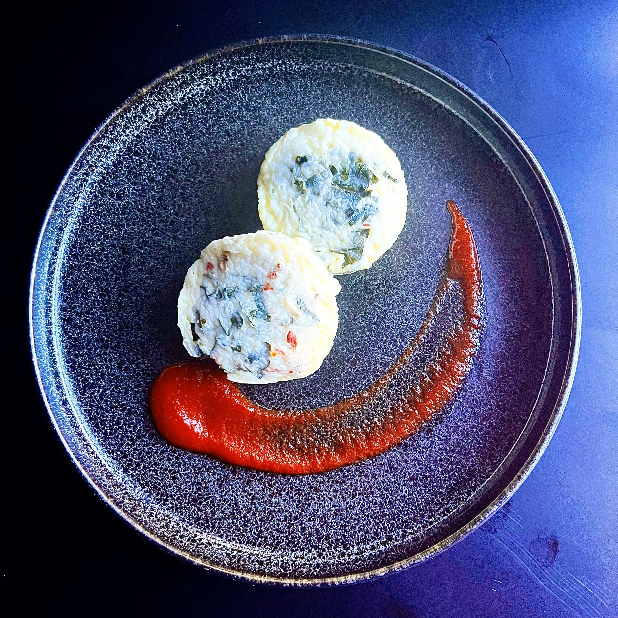 luxurious coconut-tomato curry sauce with chickpea, spinach , broccoli, herbed basmati rice